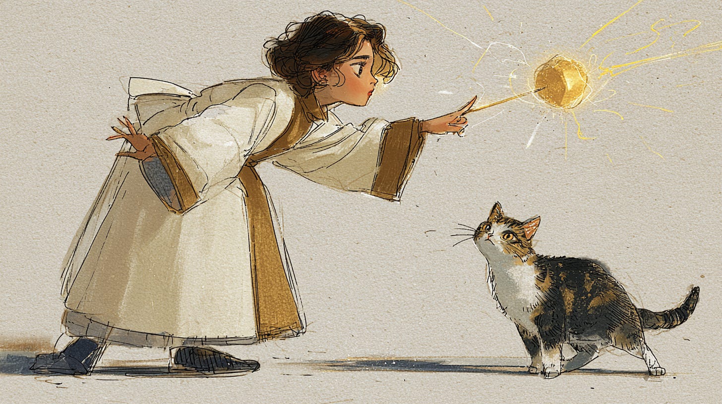 a magician Queen and her cat uses magic to fight off the alien monster's attack --ar 16:9 --sref 2659100389 --profile uw4q9o7 --sv 6 --v 7