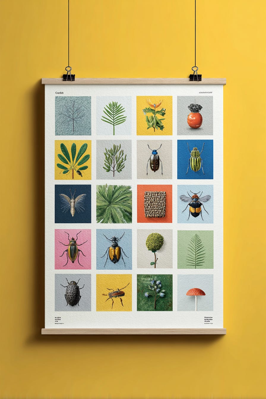 Bold manifesto poster that leads with language, giant unapologetic letterforms carved like architectural blocks across a calm field of negative space, eccentric ligatures colliding with minimalist grids, weird and distinctive, eye-catching color planes that slice diagonally, small typographic footnotes revealing nuanced intent, experimental texture from print grain and edge bleed, visual storytelling that feels like a rallying cry for freedom, personality, and flair, the words themselves becoming extraordinary sculpture, inviting an immersive read from far away to nose-close detail --ar 2:3 --profile ppjylid --v 7 Minimalist poster with a single weird icon, nuanced geometric creature built from simple shapes, generous negative space, crisp micro-typography whispering context, experimental color pop on matte field, distinctive and extraordinary, quiet yet bold --ar 2:3 --profile ppjylid --v 7 Eclectic Specimen Wall poster, diverse illustrative artistry arranged as a clean grid, each tile a different style, minimalist captions, fresh lens on taxonomy, freedom and flair balanced by ruthless negative space, unconventional yet cohesive visual storytelling --ar 2:3 --profile ppjylid --v 7 An unapologetic print experiment channels Riso misregistration, bold shapes and halftone fields wander slightly out of alignment to create living color, grainy textures and overprint halos hum with energy, language-focused labels act as anchors, minimalist grids resist the chaos just enough, a weird and distinctive artifact that celebrates process, freedom, and surprise, immersive storytelling in the edges and overlaps, a fresh lens that turns production quirks into real art with extraordinary personality and flair --ar 2:3 --profile ppjylid --v 7 Style & Approach